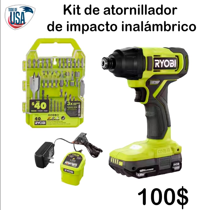 Kit de atornillador de impacto inalámbrico ONE+ de 18 V y 1/4 pulg. con batería de 1,5 Ah, cargador y kit de taladro y atornillador de impacto (40 piezas)